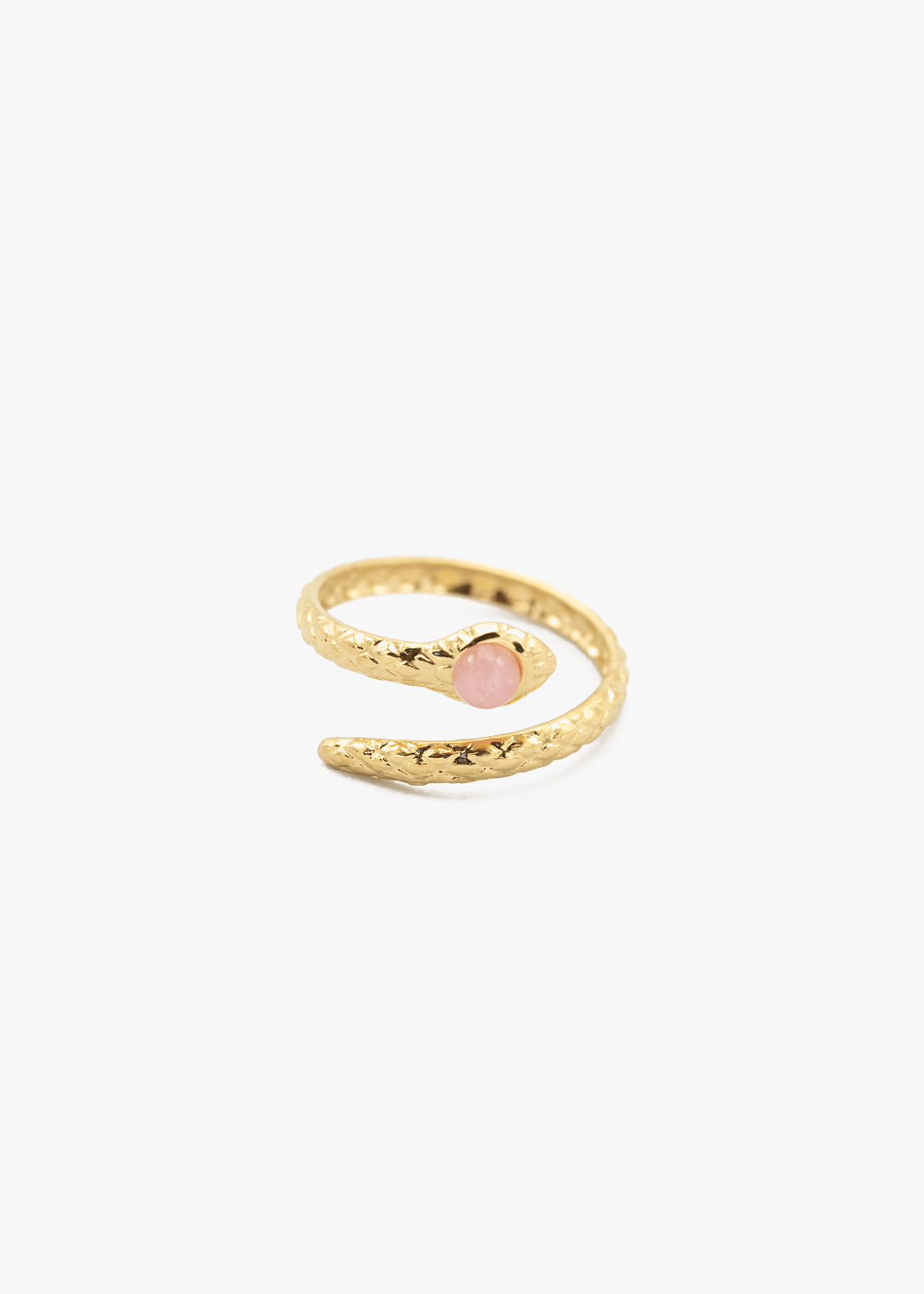 Op zoek naar een accessoire die je look net dat beetje extra geeft? Deze prachtige gouden ring is een echte eyecatcher! Met zijn unieke design en subtiele roze steen is dit dé statement ring van dit moment.