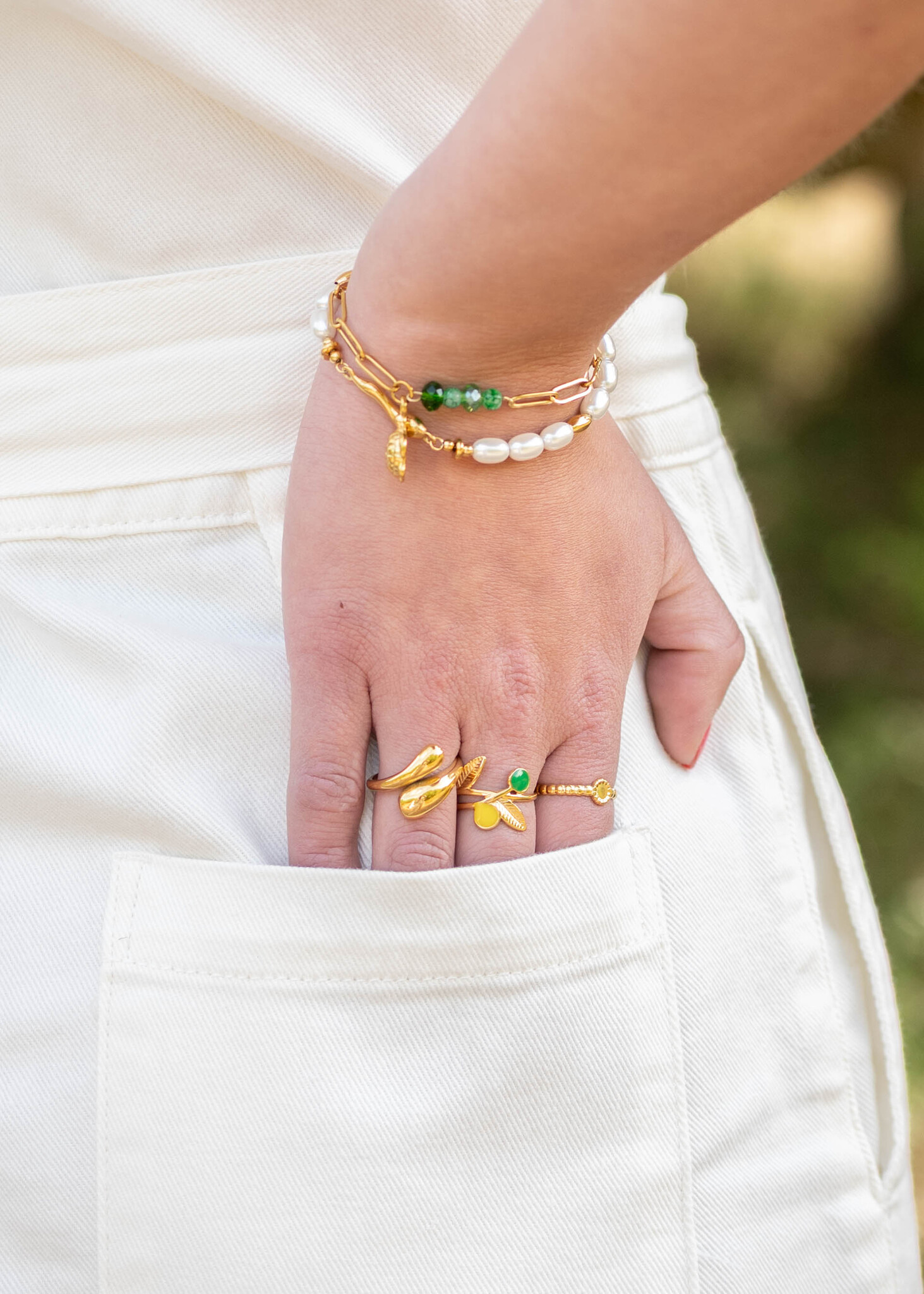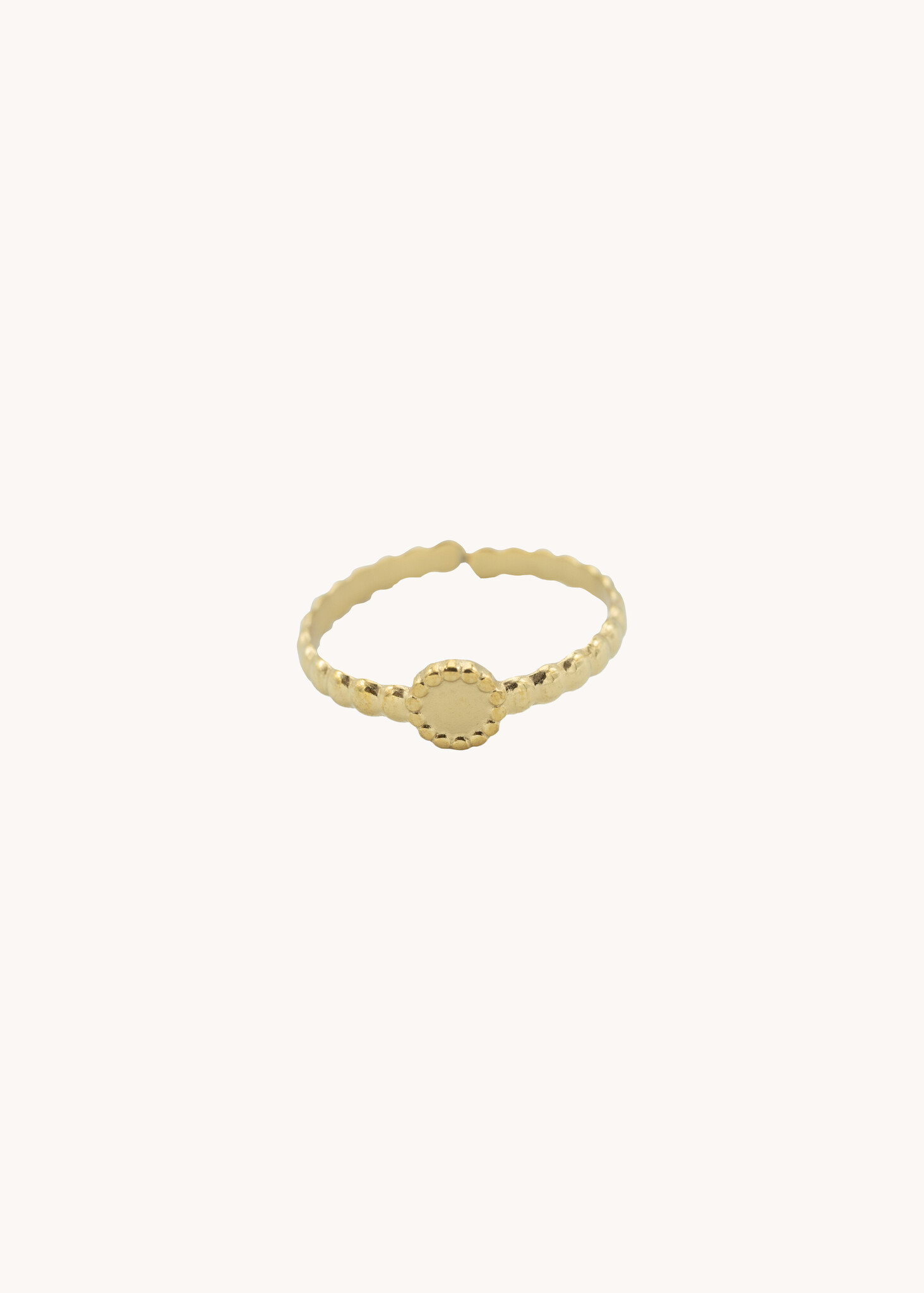 De ring is verstelbaar met bolletjes, waardoor hij altijd perfect om je vinger past. Draag hem solo voor een minimalistische look, of combineer met andere ringen voor een trendy statement.
