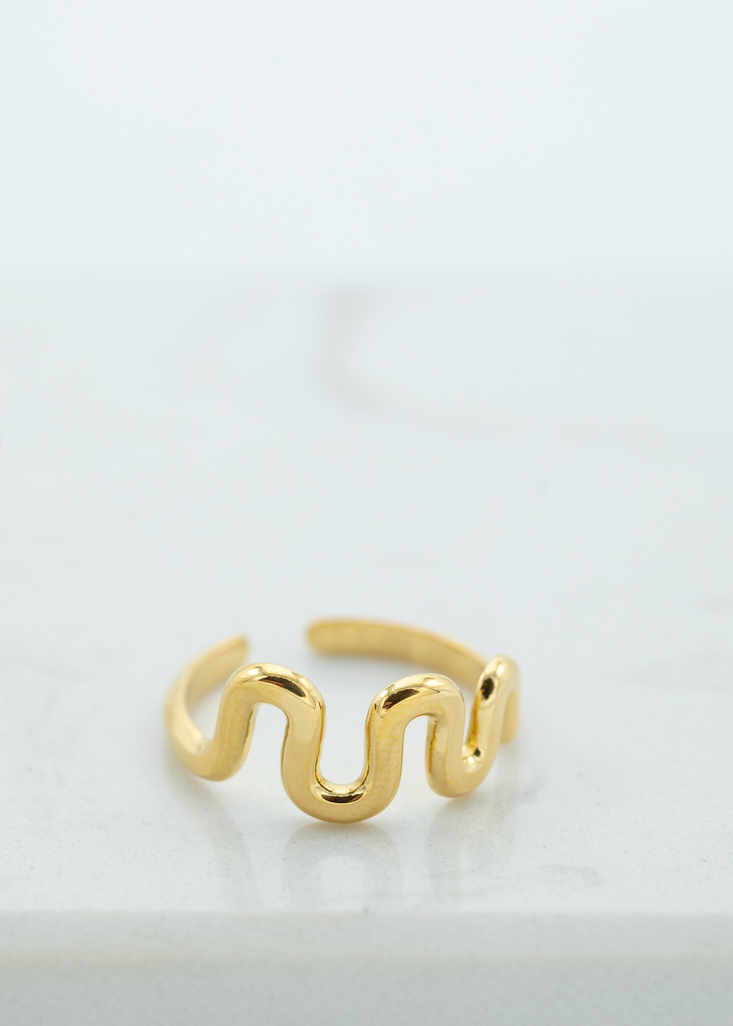 Op zoek naar een subtiele eyecatcher voor je hand? Deze gouden ring met speels wave design is een absolute must-have!