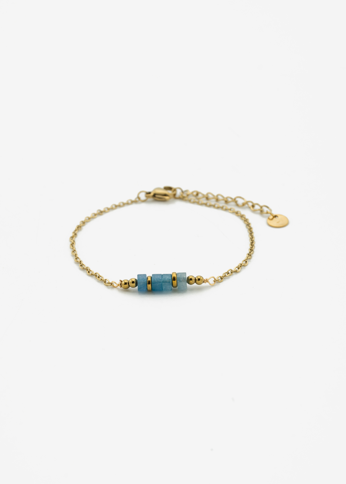 Deze elegante armband is een subtiele manier om je outfit van wat extra glans te voorzien. De combinatie van de goudkleurige afwerking en de serene blauwe steentjes zorgt voor een tijdloze look die bij elke stijl past.