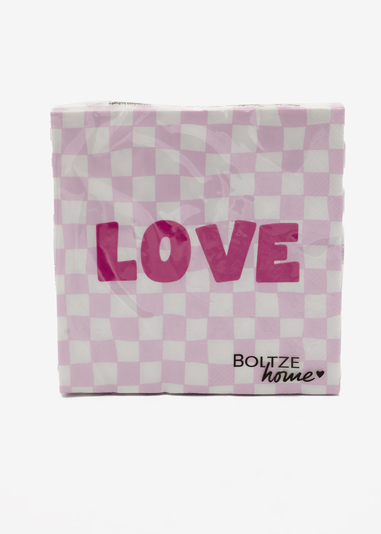 Aan verlanglijst toevoegenServetten blocked love lila✨ 4.8 / 5 score via Google Reviews 4,99 Incl. btw Op voorraad In winkelmandjeInloggen voor wishlistVoor 15:00 besteldvandaag verzondenAchteraf betalenvia Klarna, binnen 14 dagenGratis verzendingvanaf €75Veilig betalenmet beveiligde SSL verbindingBeschrijvingDeze schattige 'LOVE' servetten zijn perfect om je tafel een girly touch te geven! Met hun pastelroze blokjespatroon en het vrolijke 'LOVE' opschrift, zijn ze ideaal voor een gezellig dinertje met je besties of een romantisch avondje thuis.