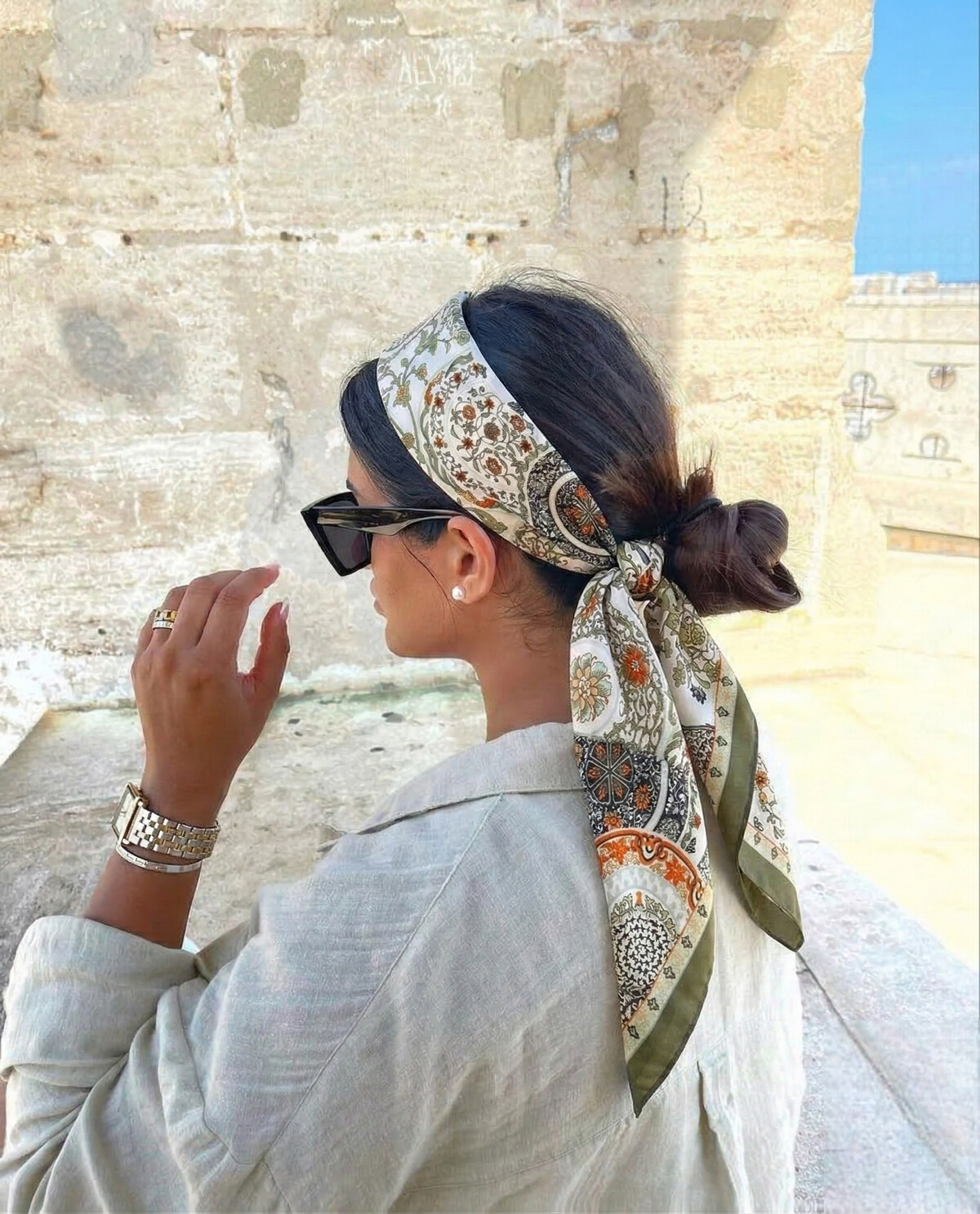 Eindeloos Stylen: Draag hem klassiek om de nek, knoop hem als trendy haaraccessoire in je vlecht, of geef je favoriete handtas een unieke touch.
