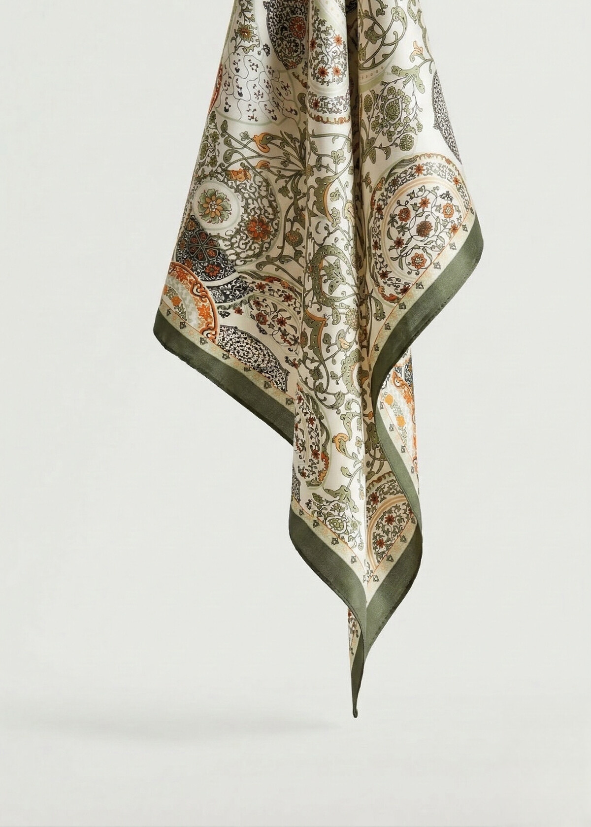 Sjaaltje satijn groen en oranje print beige