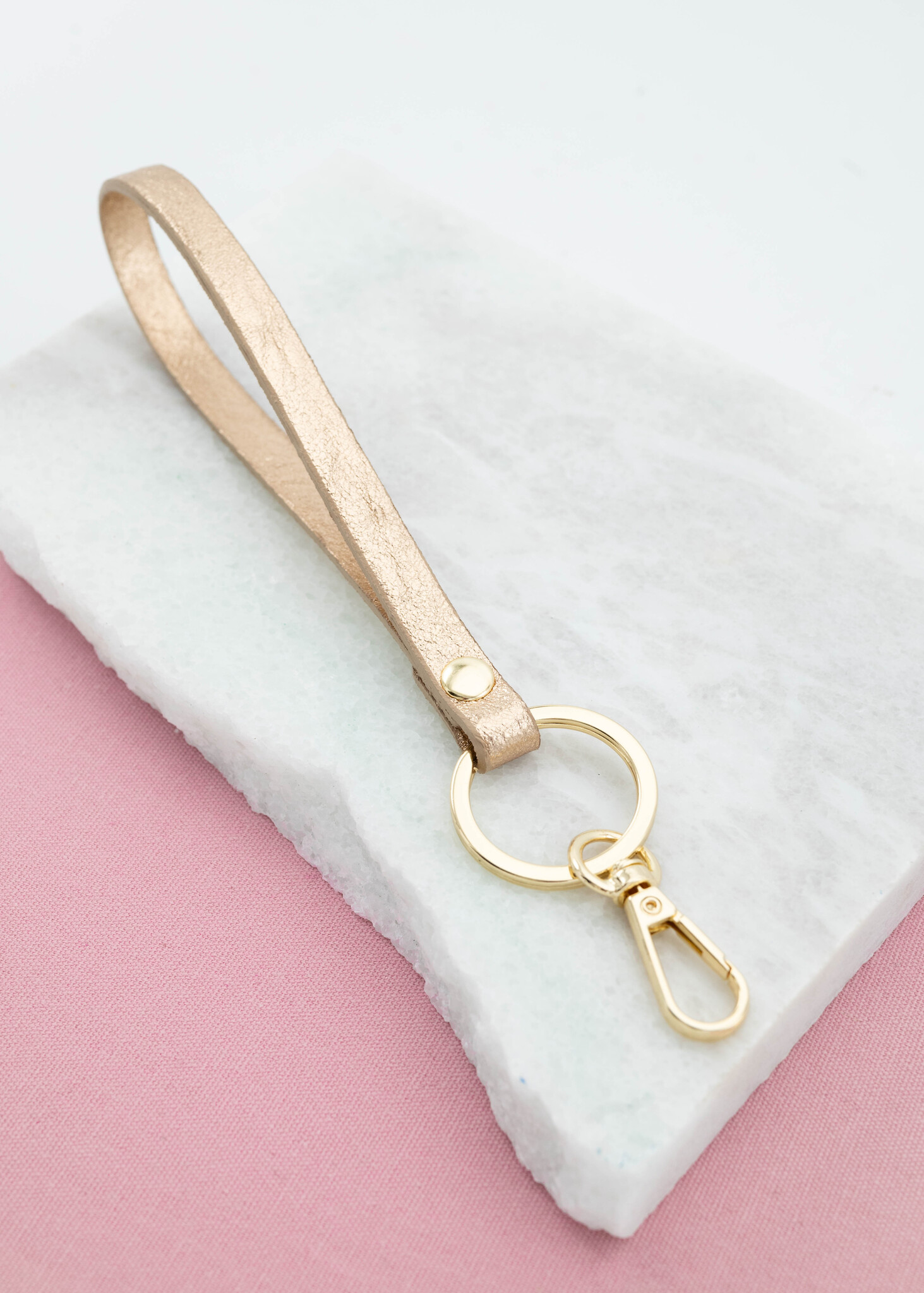 Sleutelhanger leer metallic rosegoud