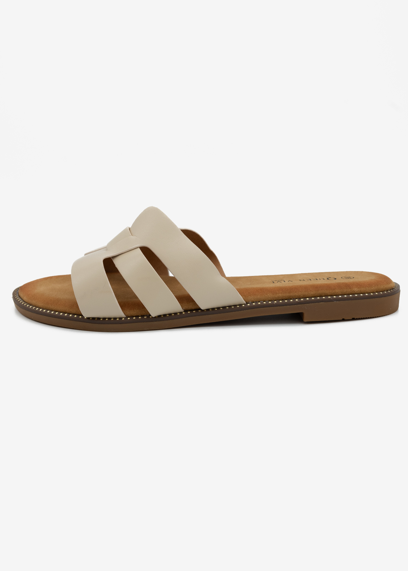 Deze beige slippers zijn de perfecte zomerslippers! De trendy look gecombineerd met het comfort maakt deze slippers ideaal voor warme dagen. Combineer ze met je favoriete zomeroutfit voor een effortless look.