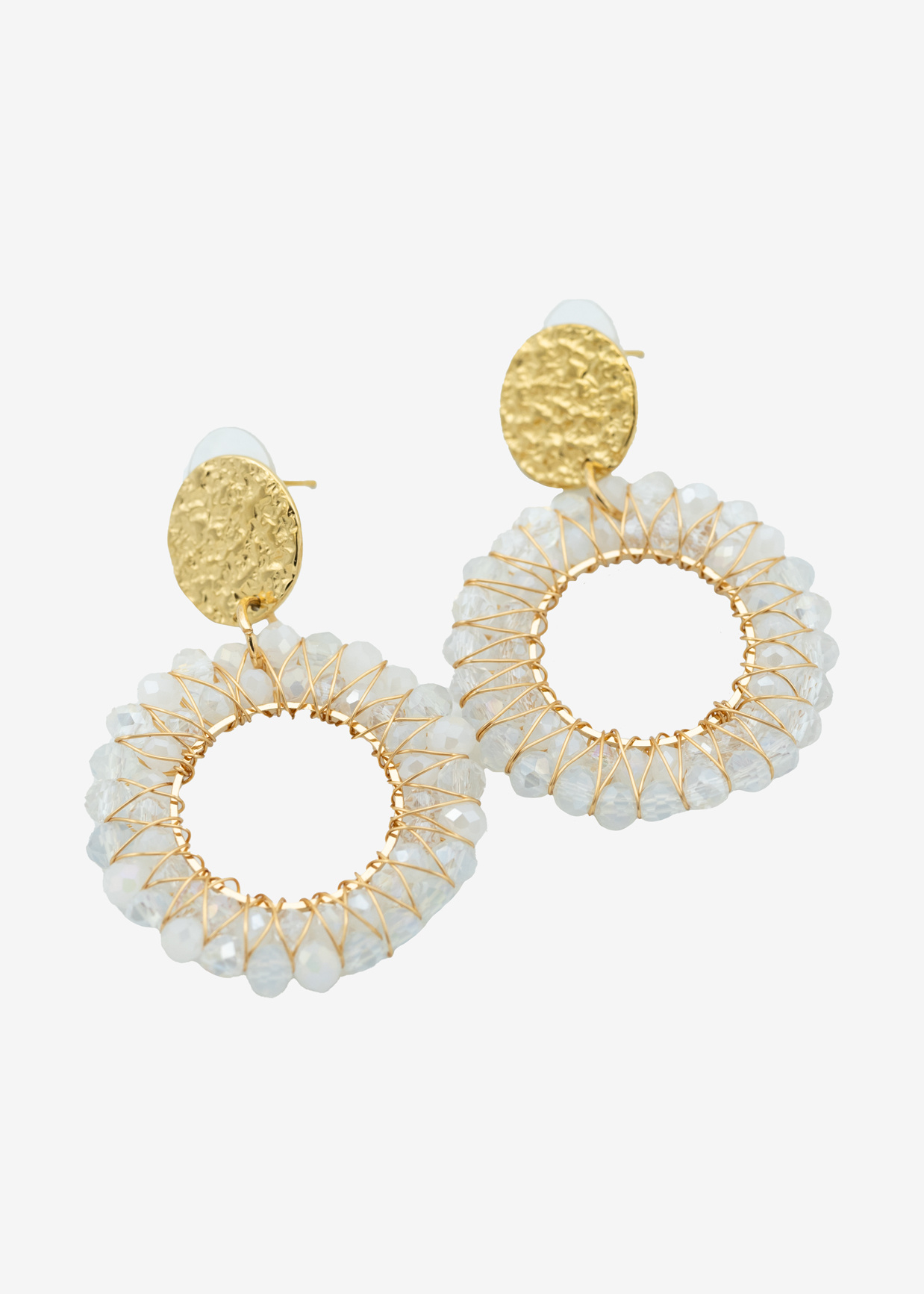 Draag de witte kralen oorbellen met een mooie jurk voor een elegante look, of ga voor een stoere touch en combineer ze met een basic top en een leren jasje.