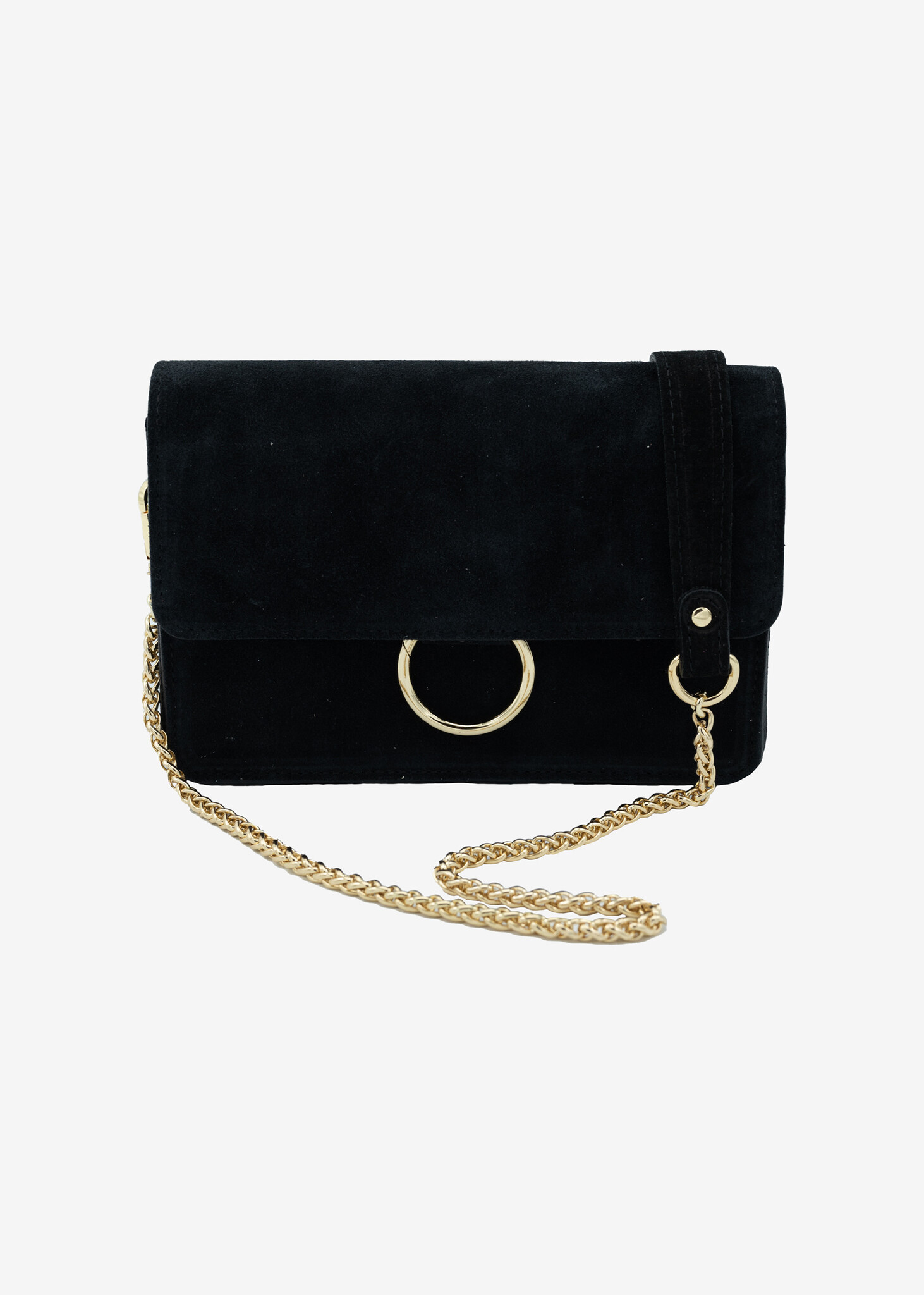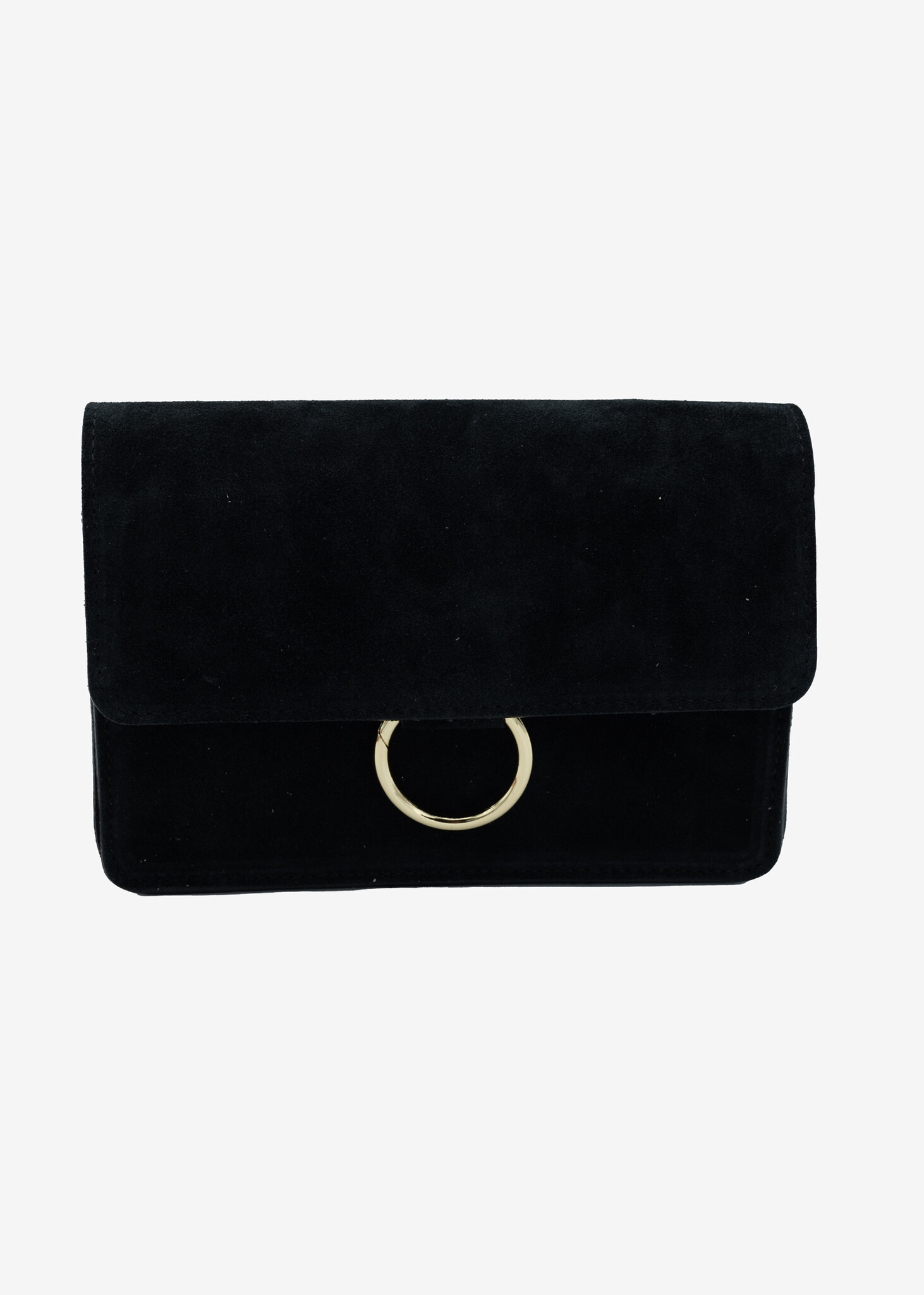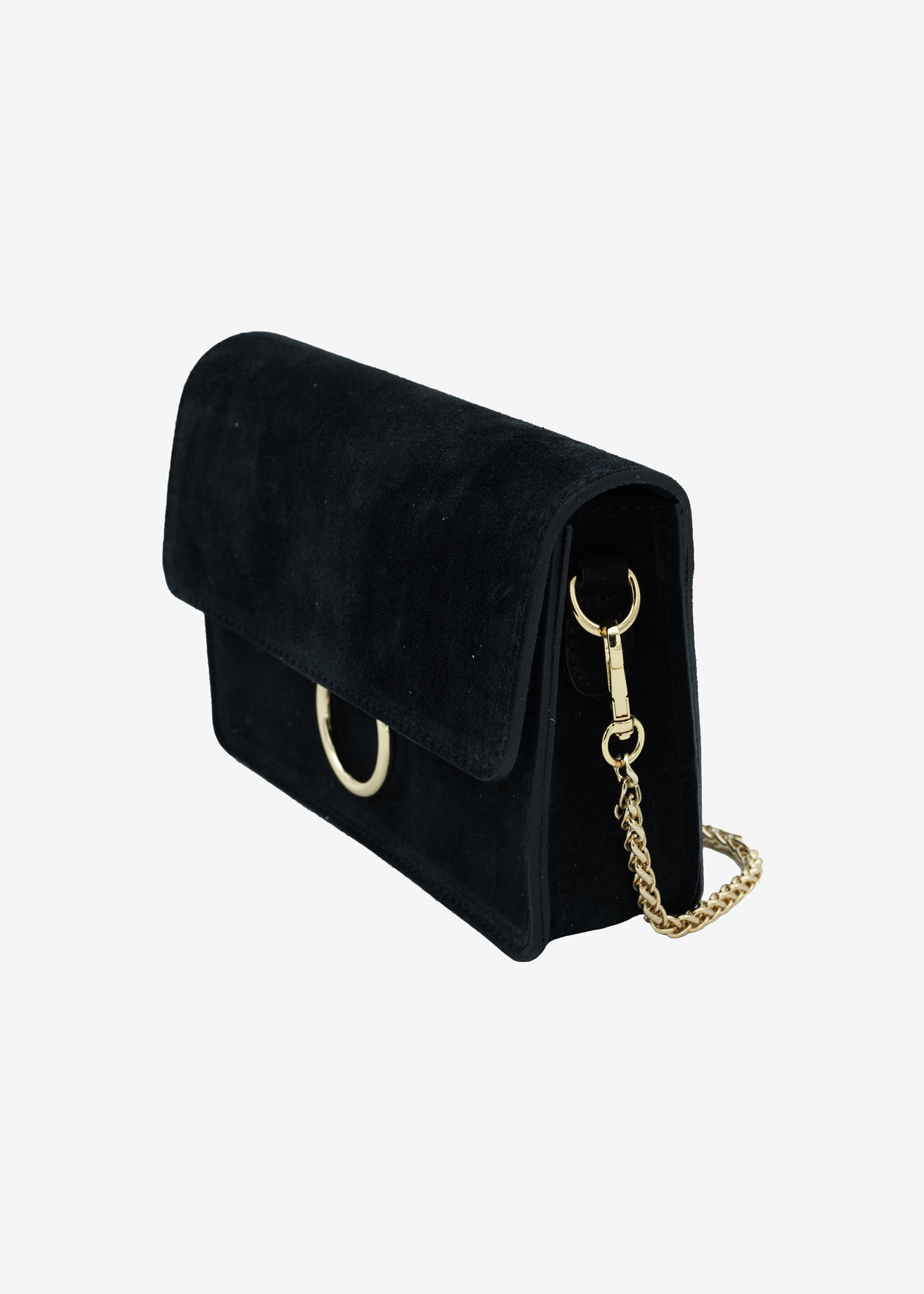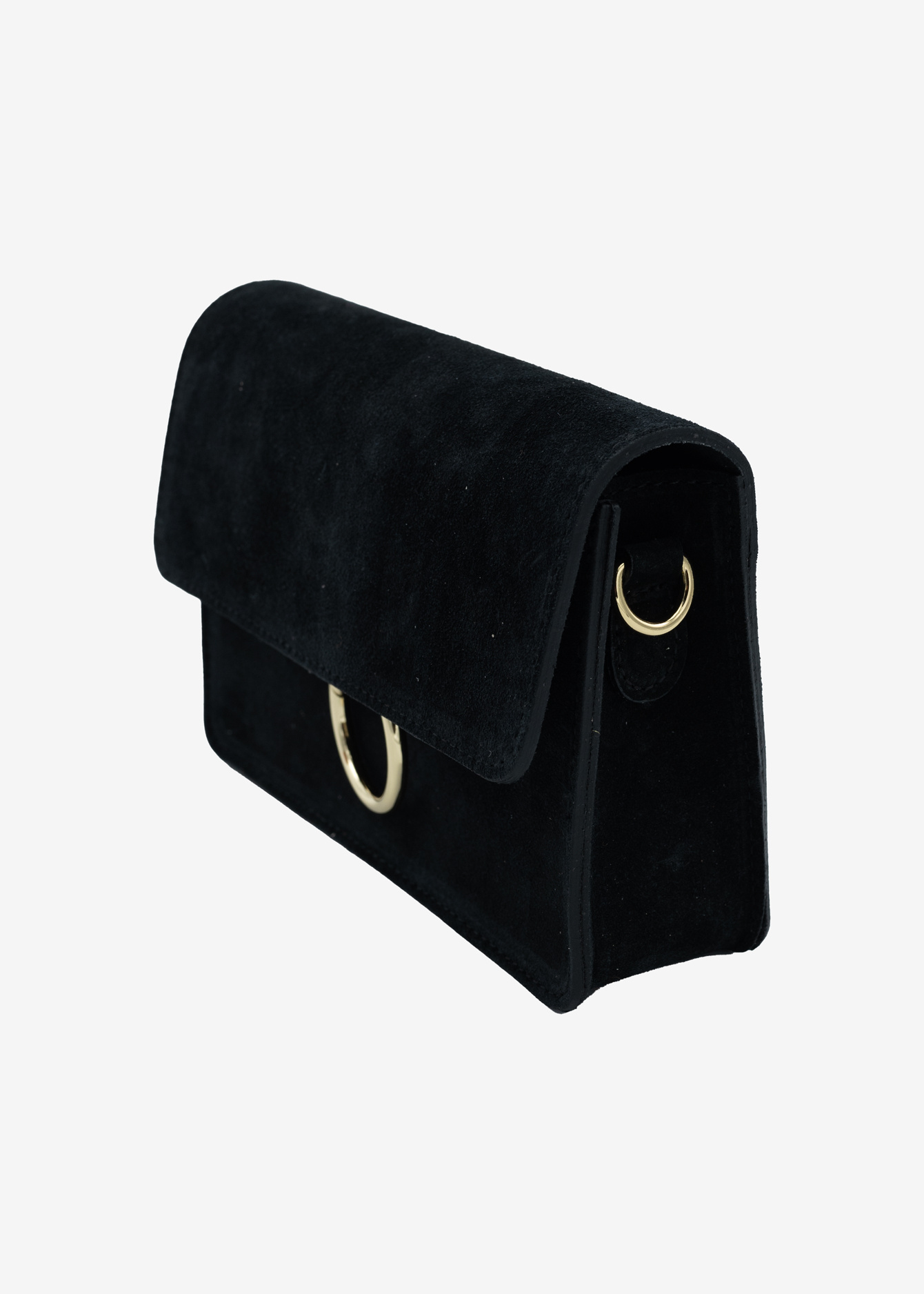 Deze zwarte schoudertas is vervaardigd van hoogwaardig suede, wat zorgt voor een luxe uitstraling. De tas is voorzien van een handige ritssluiting en een extra vakje aan de binnenkant om al jouw essentials georganiseerd te houden.