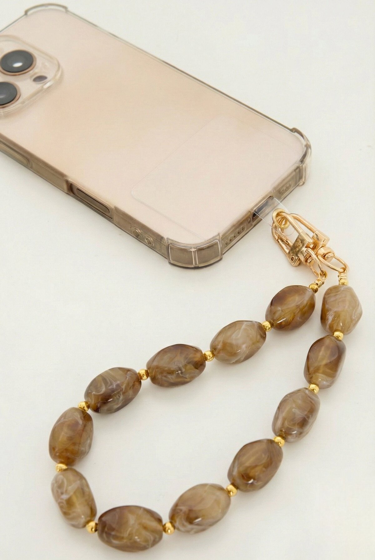De combinatie met de gouden hardware maakt dit koord tot een echt sieraad. Het is de ideale accessoire voor wie houdt van een tijdloze, chique look die overal bij past. Of je nu een beige trenchcoat draagt of een zwarte blazer, deze phone chain maakt je outfit af.