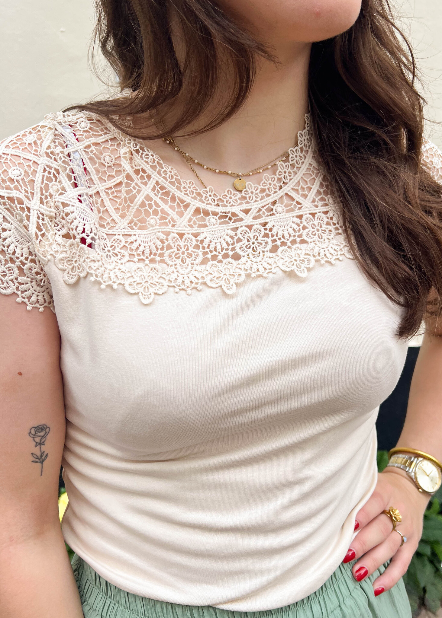 Aan verlanglijst toevoegenTop met kant Lucy beige✨ 4.8 / 5 score via Google Reviews 24,99 Incl. btw Op voorraad Maat S/M L/XLSize: *S/ML/XLIn winkelmandjeInloggen voor wishlistVoor 15:00 besteldvandaag verzondenAchteraf betalenvia Klarna, binnen 14 dagenGratis verzendingvanaf €75Veilig betalenmet beveiligde SSL verbindingBeschrijvingDeze beige top met kanten details is een echte must-have! De hals met kant geeft een elegante touch. Perfect voor een avondje uit of een speciale gelegenheid. Combineer 'm met je favoriete jeans of rok!
