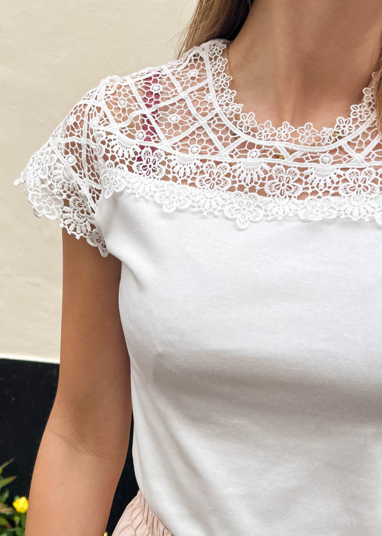 Aan verlanglijst toevoegenTop met kant Lucy wit✨ 4.8 / 5 score via Google Reviews 24,99 Incl. btw Op voorraad Maat S/M L/XLSize: *S/ML/XLIn winkelmandjeInloggen voor wishlistVoor 15:00 besteldvandaag verzondenAchteraf betalenvia Klarna, binnen 14 dagenGratis verzendingvanaf €75Veilig betalenmet beveiligde SSL verbindingBeschrijvingDeze witte top met kant is een echte musthave! De top heeft een mooie hals met kant en korte mouwen. Perfect voor een feestje of gewoon een dagje uit. Combineer de top met je favoriete rok of jeans!