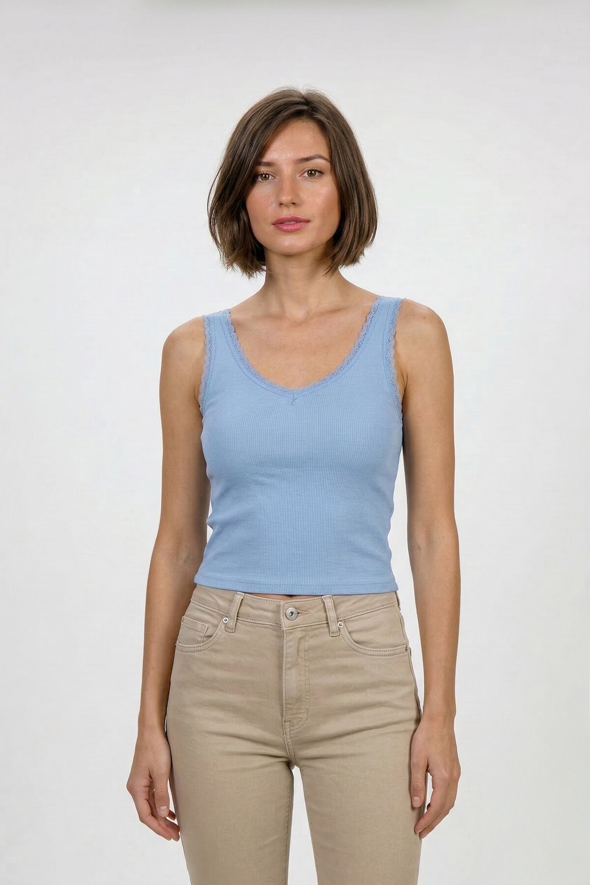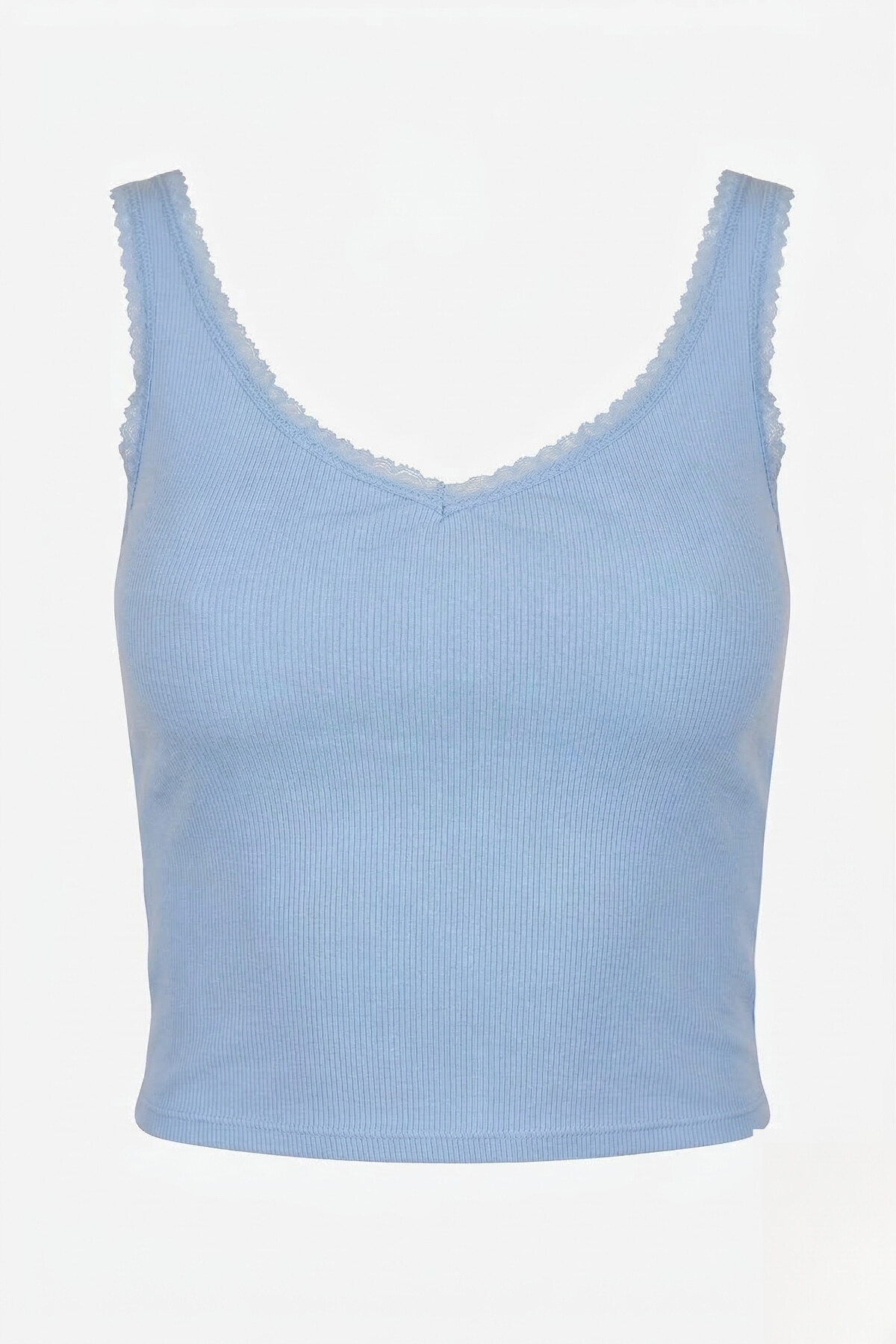 Deze lichtblauwe top met bh is super cute! De kanten rand geeft 'm een extra girly touch. De voorgevormde cups zorgen voor een perfecte pasvorm. Ideaal voor een dagje chillen of een avondje uit!