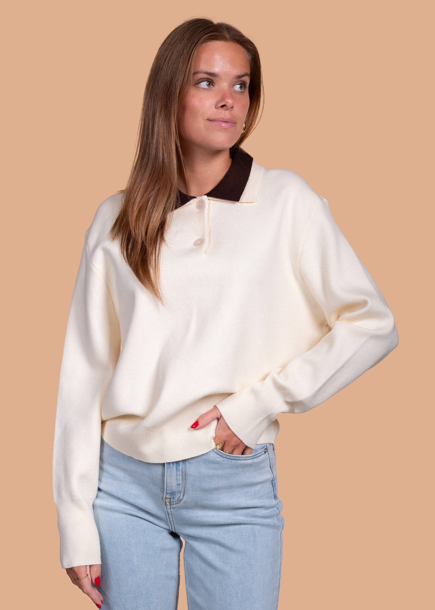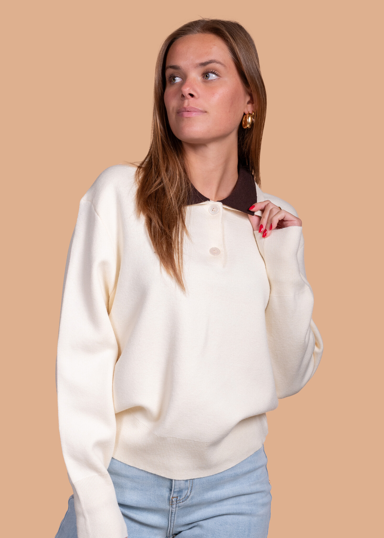 Aan verlanglijst toevoegenTrui Jacky beige✨ 4.8 / 5 score via Google Reviews 49,99 Incl. btw Op voorraad Maat S/M M/LSize: *S/MM/LIn winkelmandjeInloggen voor wishlistVoor 15:00 besteldvandaag verzondenAchteraf betalenvia Klarna, binnen 14 dagenGratis verzendingvanaf €75Veilig betalenmet beveiligde SSL verbindingBeschrijvingDe Jacky trui is een echte musthave! Deze beige trui met kraag heeft een oversized fit en is super comfy. Perfect voor een casual look, maar ook leuk om te combineren met een rokje voor een avondje uit.