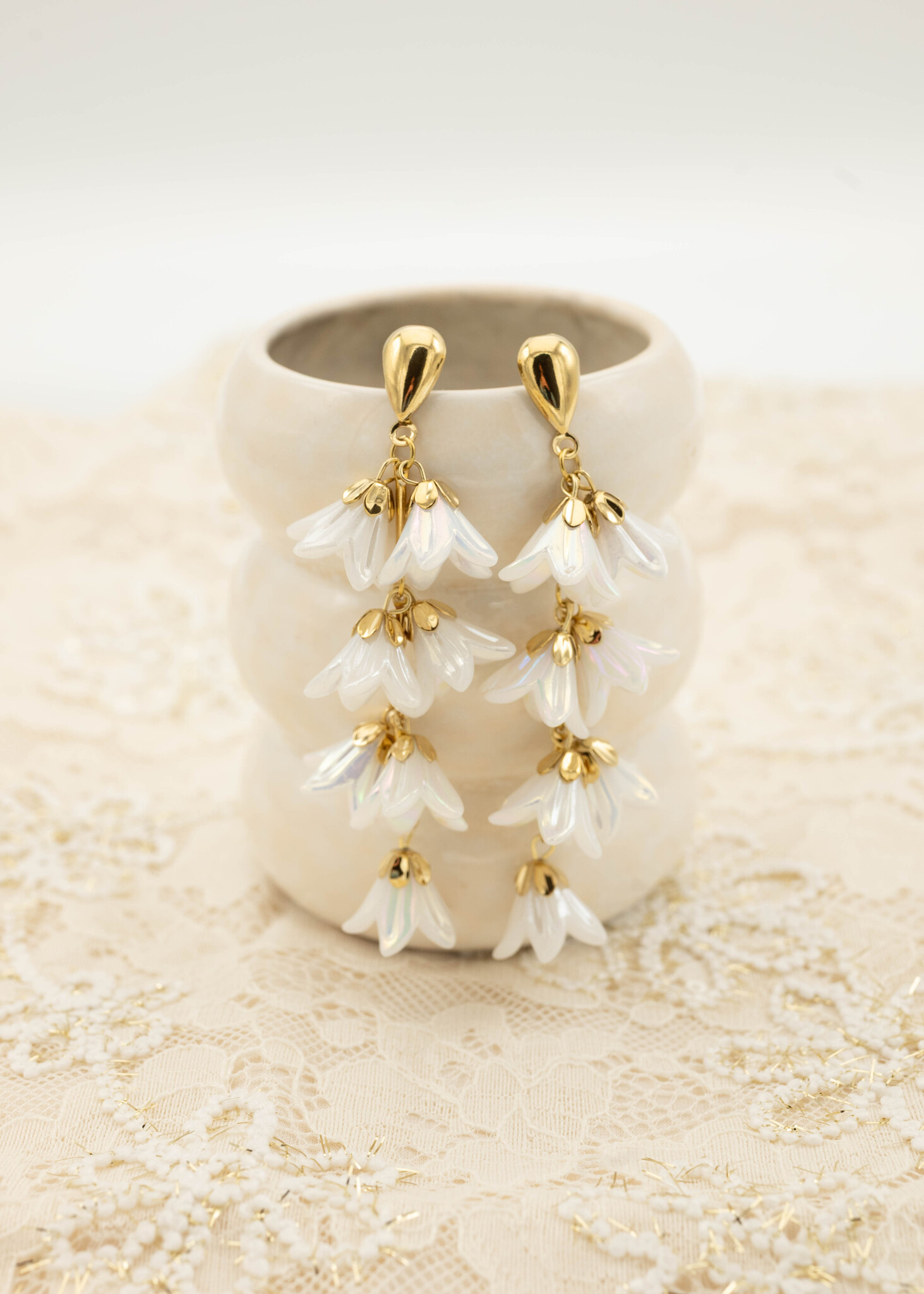 Deze elegante oorbellen zijn een echte eyecatcher! De prachtige, witte bloemen geven je outfit direct een romantische en zomerse touch.