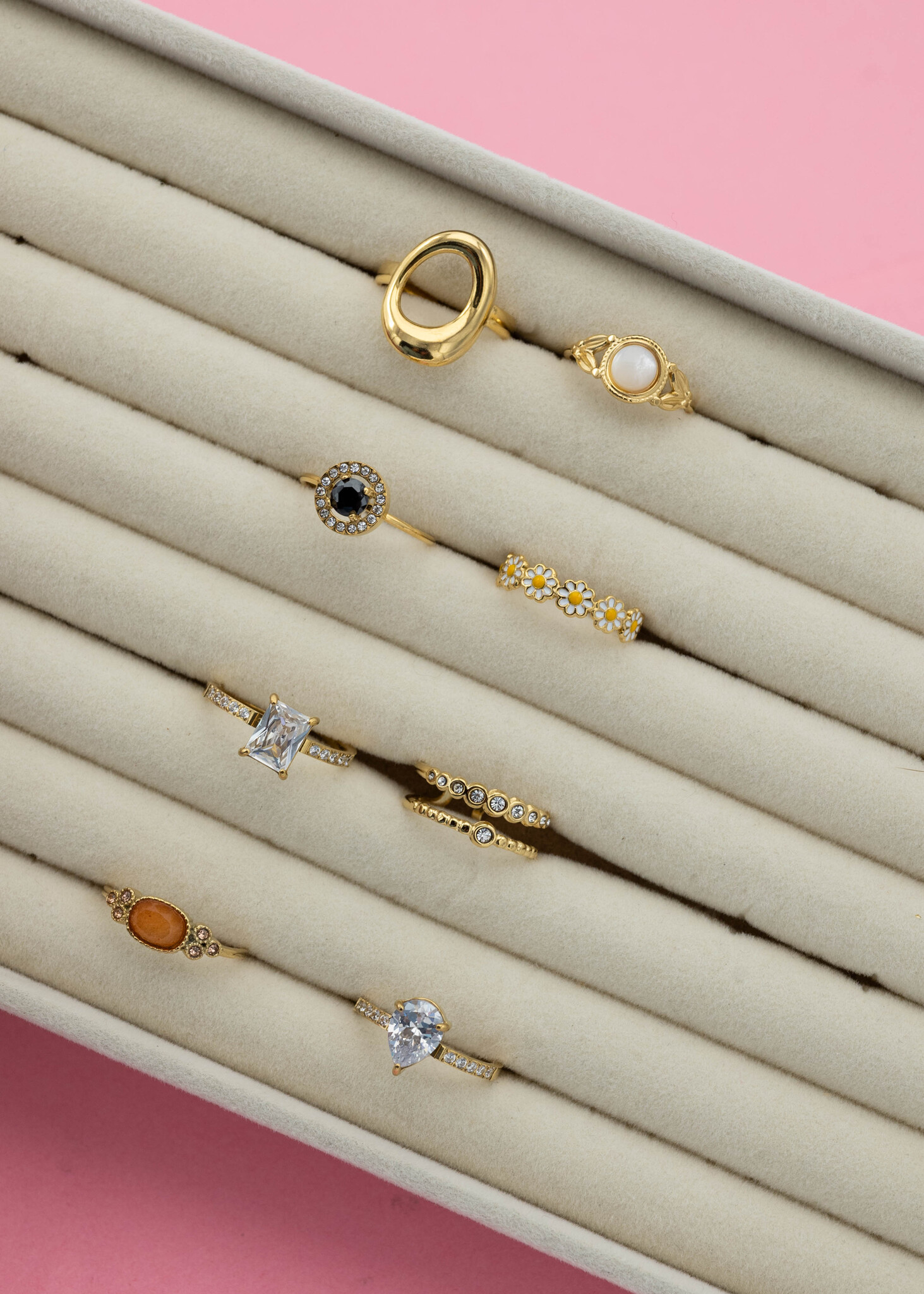 Of je nu een casual look rockt of juist helemaal uitgedost bent voor een feestje, deze vintage ring met amber steen maakt je outfit helemaal af. Combineer hem met andere gouden ringen voor een trendy stacked look, of draag hem solo voor een subtiele touch of sparkle.