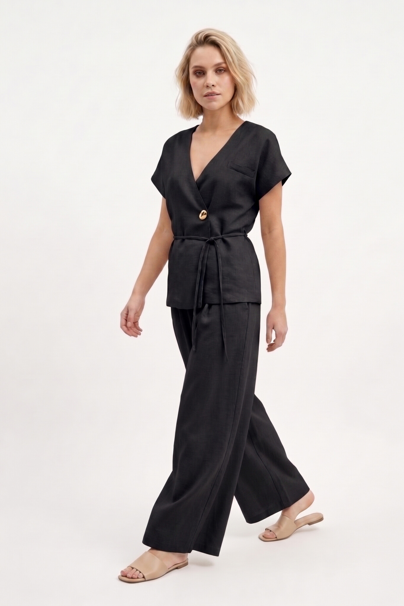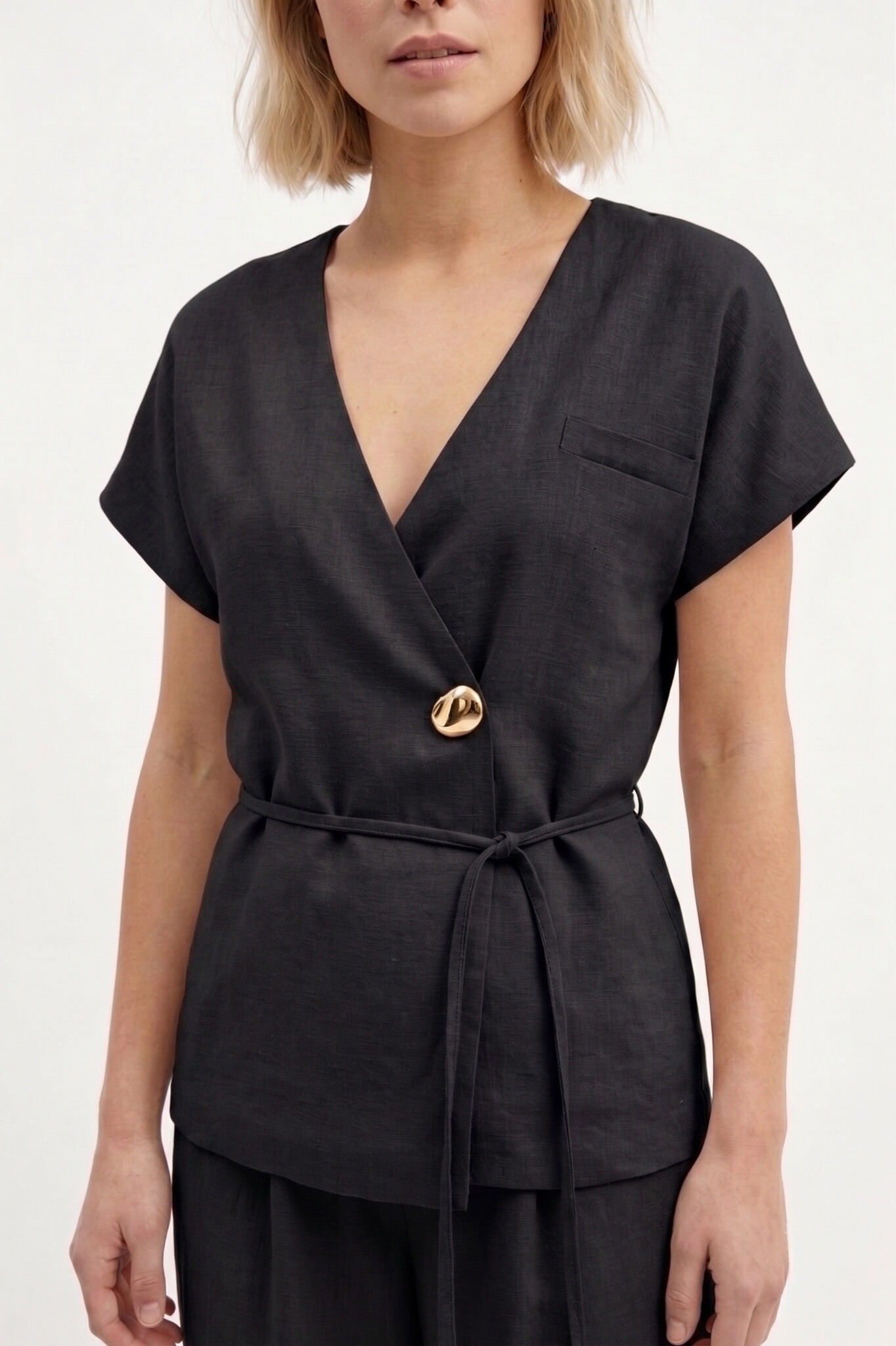 Viscose gilet blouse zwart