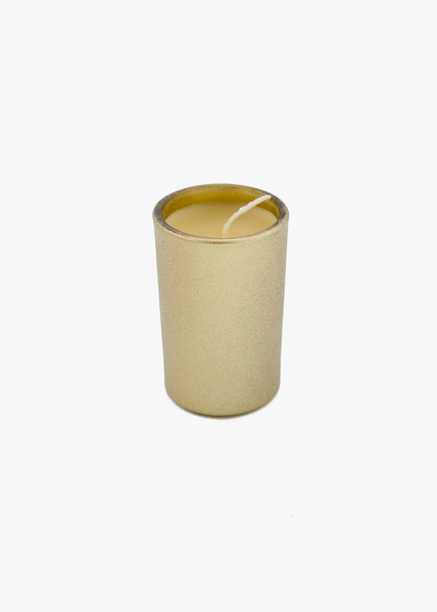 Dit kleine kaarsje is perfect om een vleugje warmte en sfeer toe te voegen aan je interieur. De gouden kleur geeft 'm een luxe uitstraling, terwijl het votive formaat 'm super veelzijdig maakt.