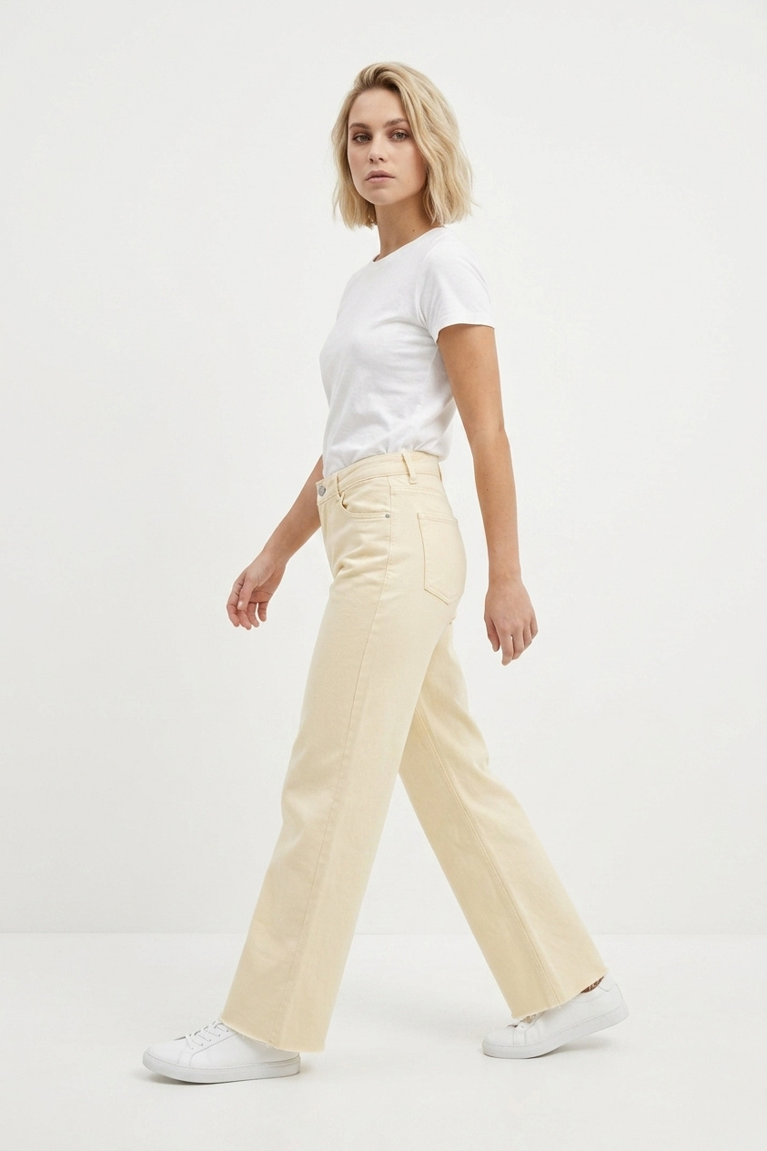 Deze botergele wide leg jeans is de perfecte toevoeging aan je garderobe. De extra lange pijpen zijn ideaal voor lange dames! Gemaakt van katoen met elastaan voor een fijne stretch. Combineer 'm casual of gekleed!