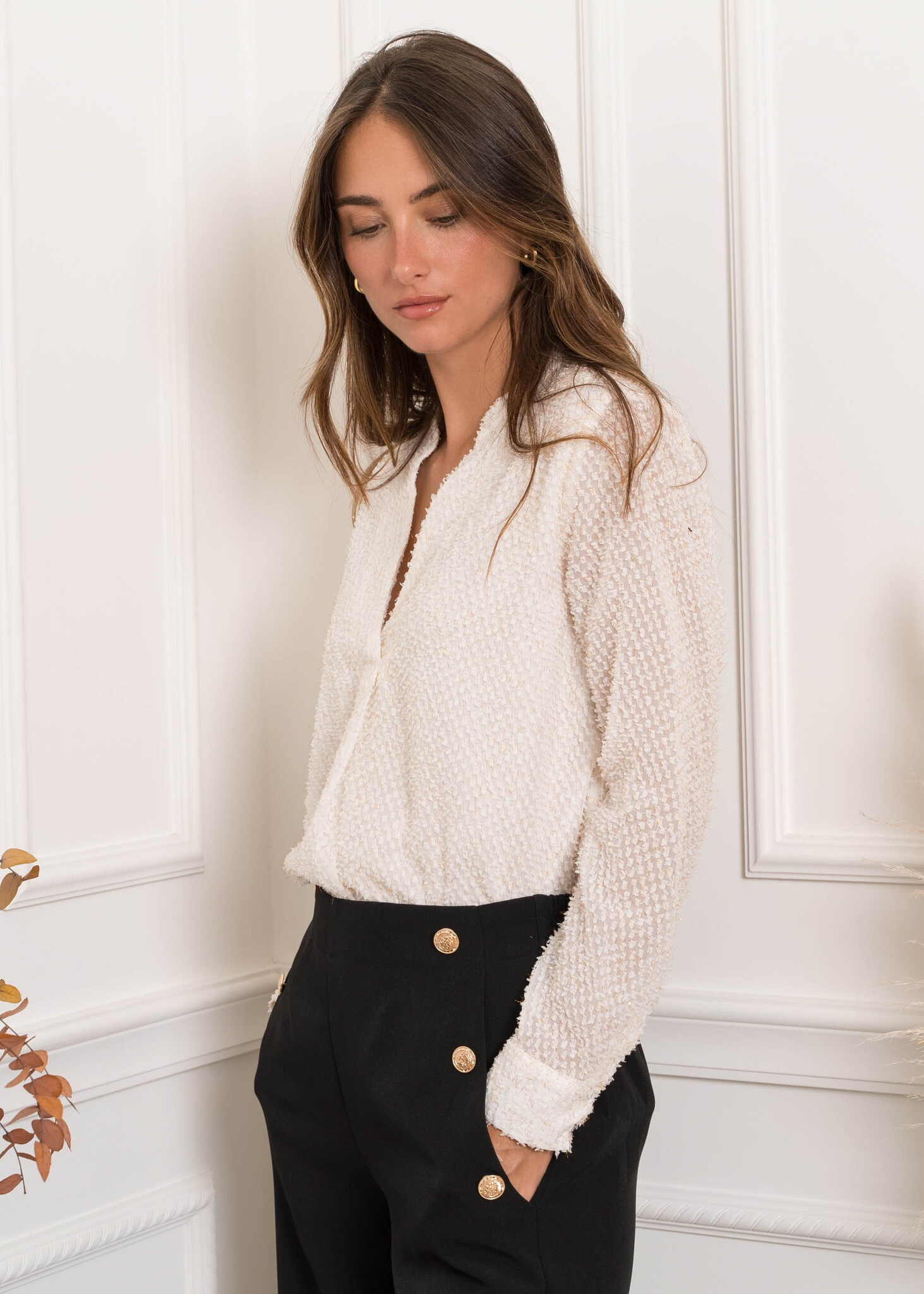 De mogelijkheden zijn eindeloos met deze veelzijdige blouse! Combineer hem met een statement ketting en bijpassende oorbellen voor een extra vrouwelijke touch. Of ga voor een stoere look met een leren jasje en boots.