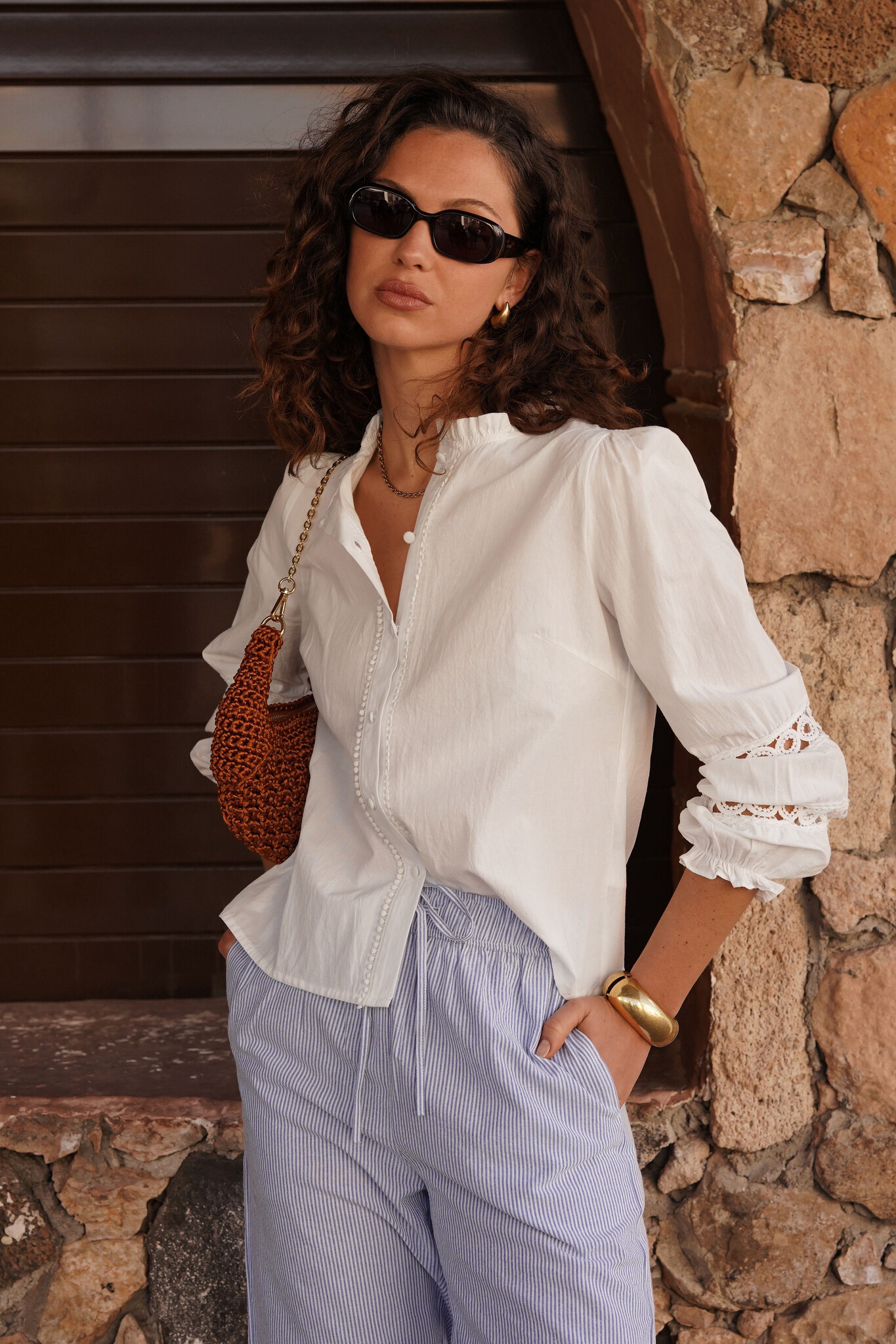 Aan verlanglijst toevoegenWitte blouse met ruffle boord✨ 4.8 / 5 score via Google Reviews 37,99 Incl. btw Op voorraad Maat S/M M/LSize: *S/MM/LIn winkelmandjeInloggen voor wishlistVoor 15:00 besteldvandaag verzondenAchteraf betalenvia Klarna, binnen 14 dagenGratis verzendingvanaf €75Veilig betalenmet beveiligde SSL verbindingBeschrijvingDeze witte blouse met broderie details is een must-have! De ruffle boord geeft 'm een speelse touch. Perfect voor een dagje shoppen of een brunch met vriendinnen. Combineer 'm met je favo jeans!