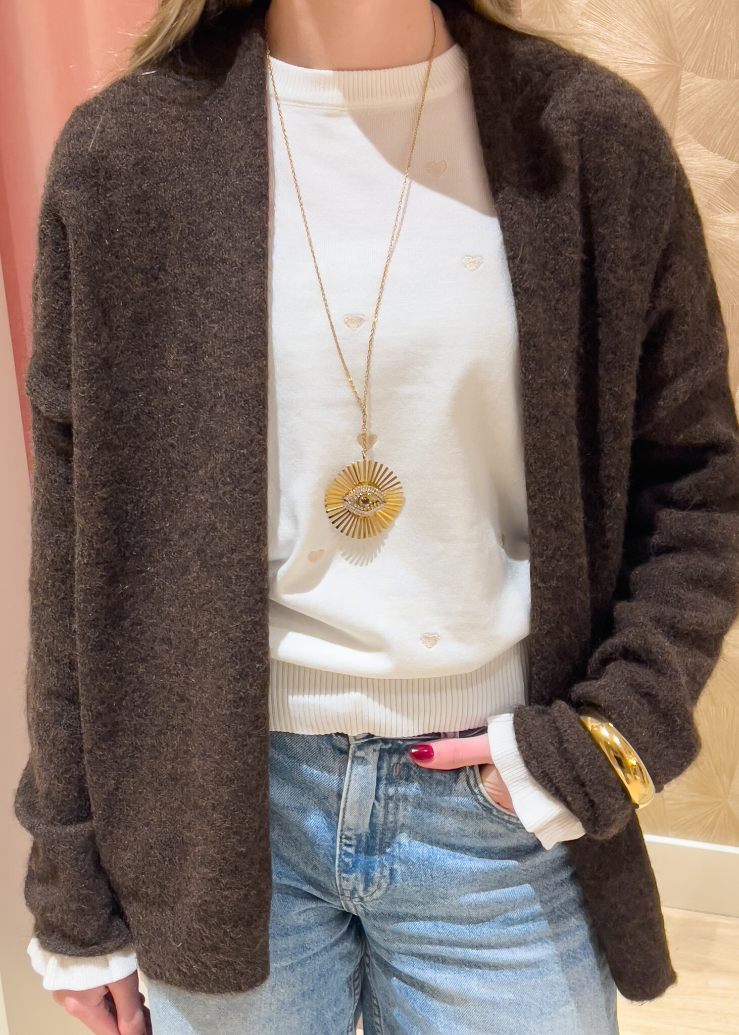 Aan verlanglijst toevoegenZacht vest Kelly chocolade✨ 4.8 / 5 score via Google Reviews 39,99 Incl. btw Niet op voorraad Geef een seintjeInloggen voor wishlistVoor 15:00 besteldvandaag verzondenAchteraf betalenvia Klarna, binnen 14 dagenGratis verzendingvanaf €75Veilig betalenmet beveiligde SSL verbindingBeschrijvingDit zachte vest Kelly in chocoladebruin is een must-have! Het vest is heerlijk warm en comfortabel. Perfect voor een relaxte dag thuis of een casual look met vriendinnen. De bruine kleur is makkelijk te combineren.