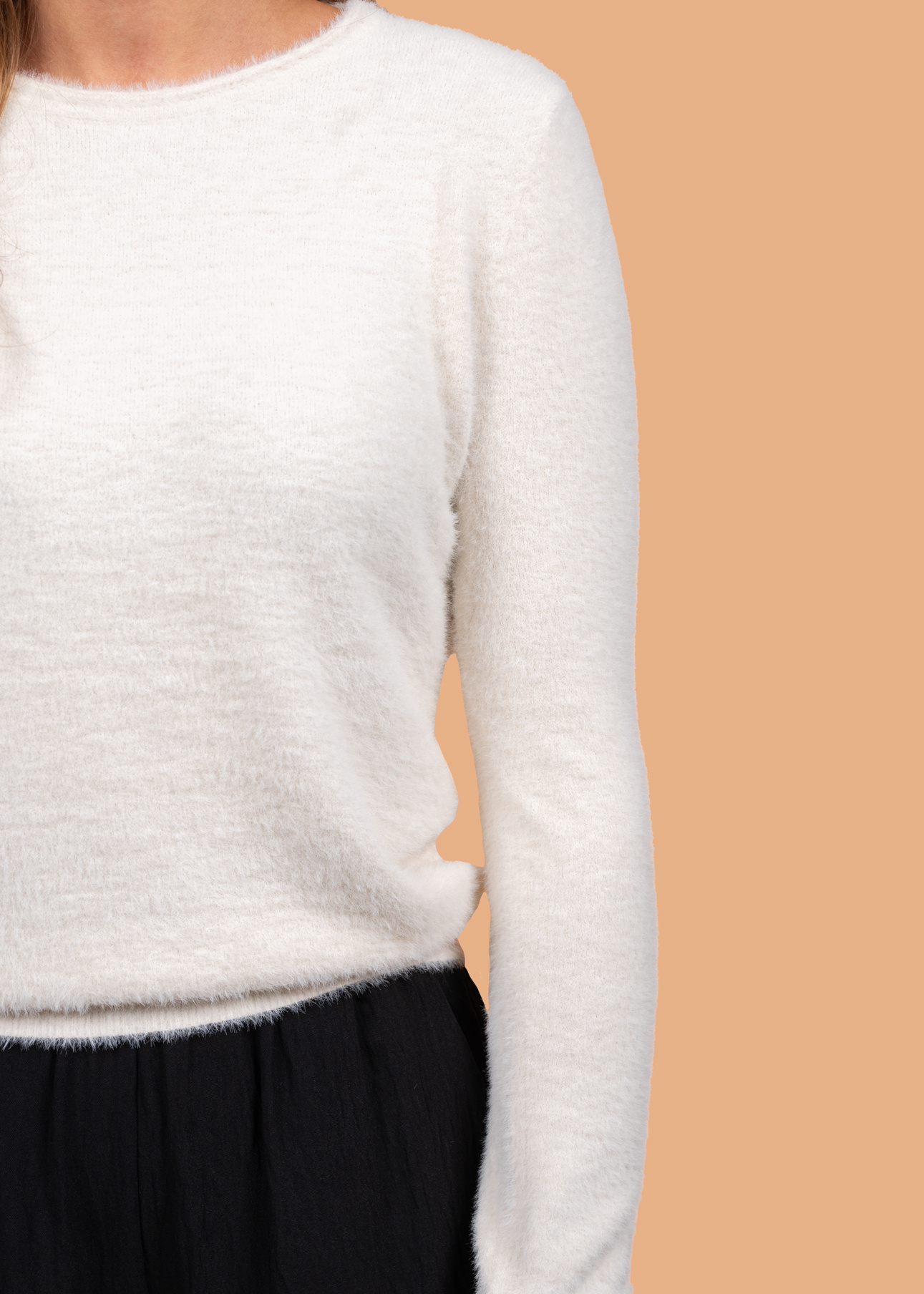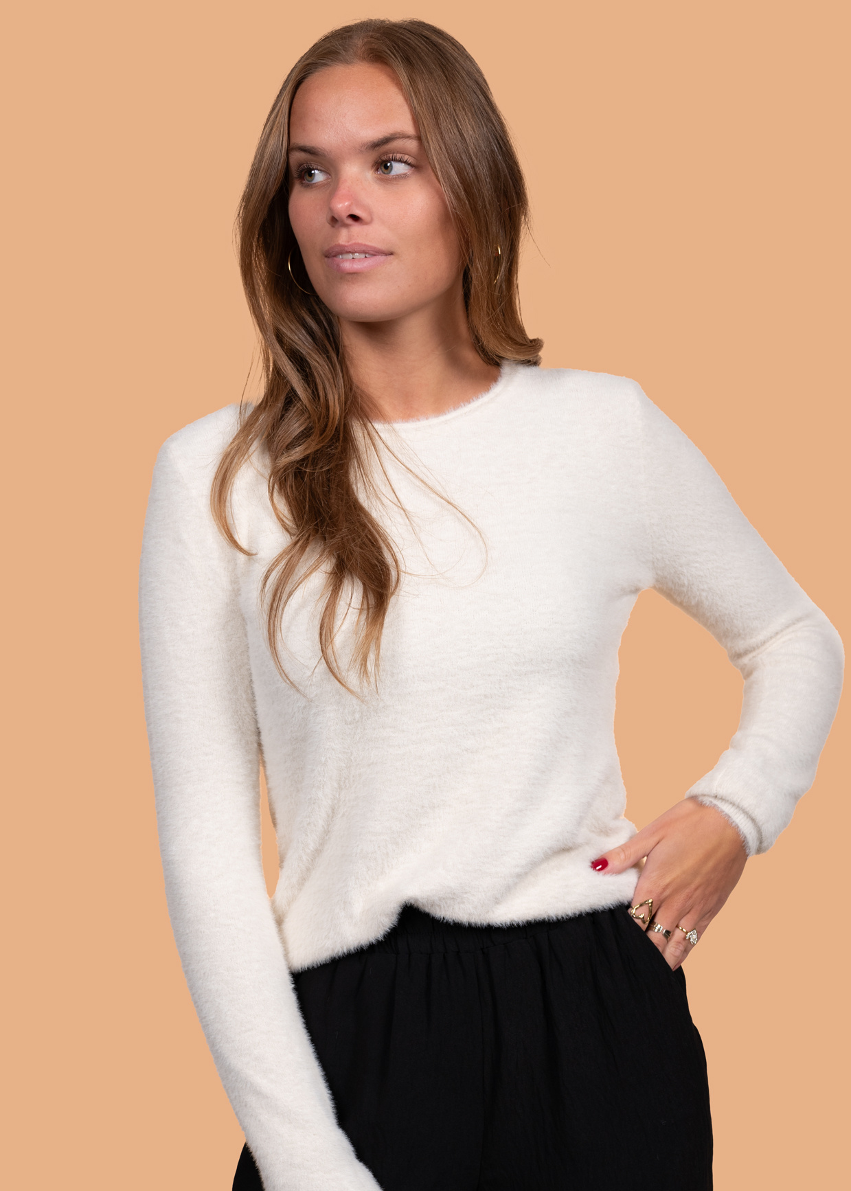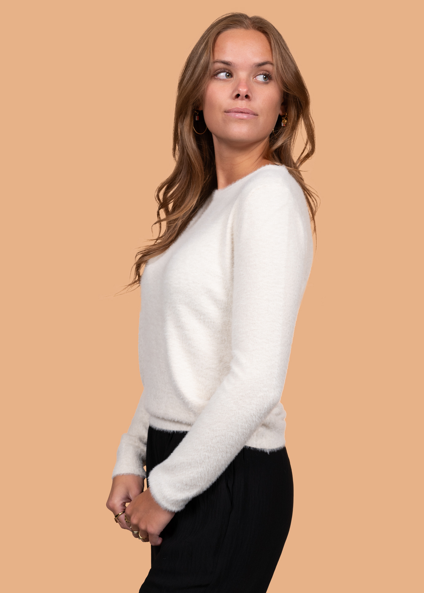 Hoe je deze trui ook styled, hij wordt gegarandeerd je nieuwe favoriet. De zachte stof voelt heerlijk aan op je huid en de tijdloze witte kleur past bij elke outfit.