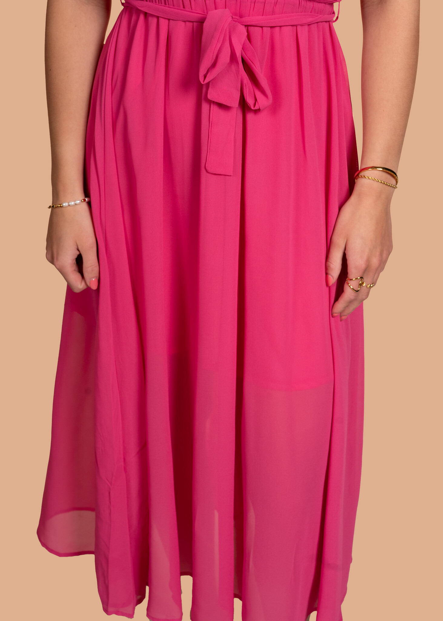Zomer jurk met plisse felroze