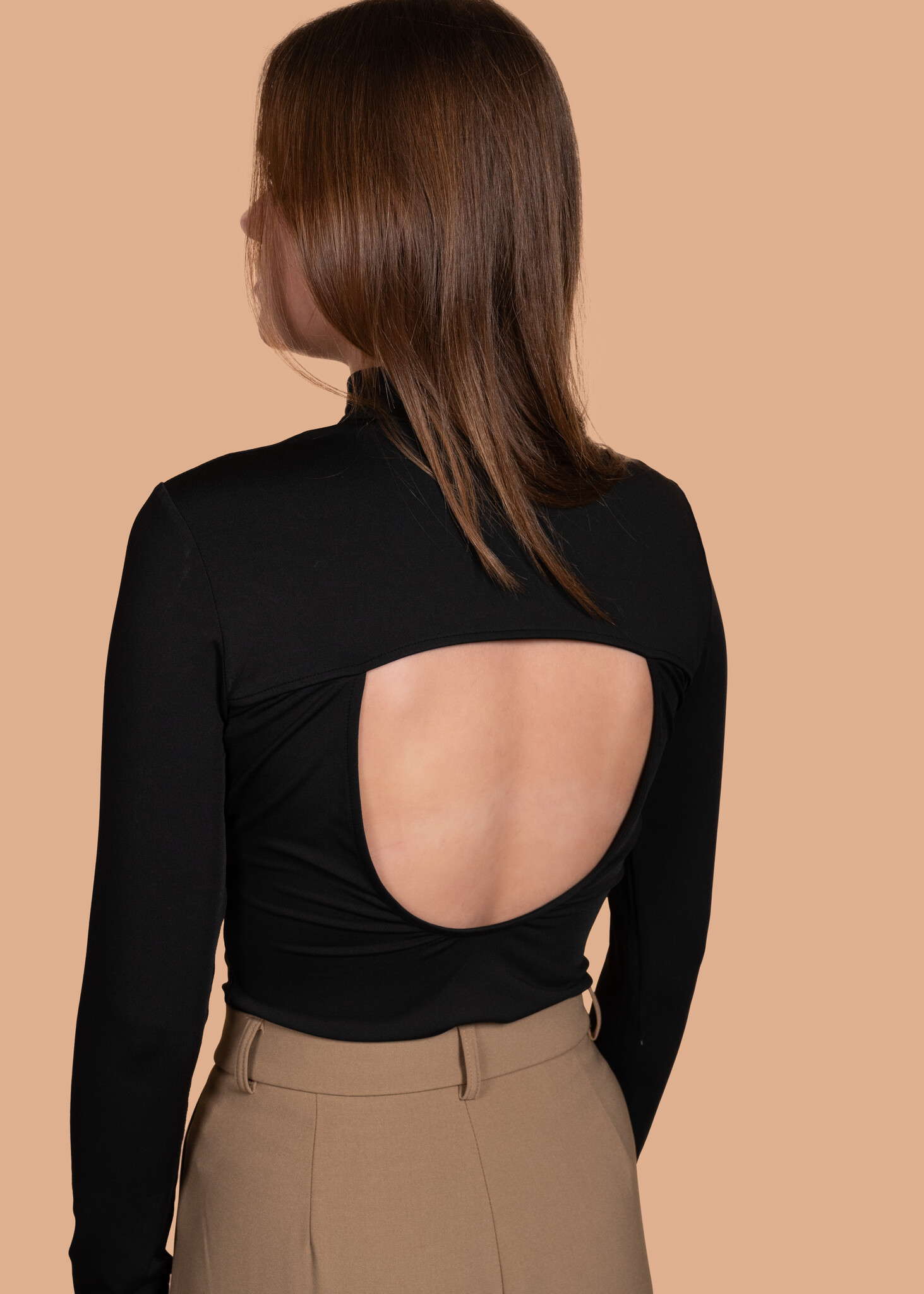 Draag deze body top met open rug zwart overdag met een high waisted jeans en sneakers voor een effortless look. Ga je 's avonds de deur uit? Combineer de top dan met een mooie pantalon en hakken voor een sophisticated uitstraling.
